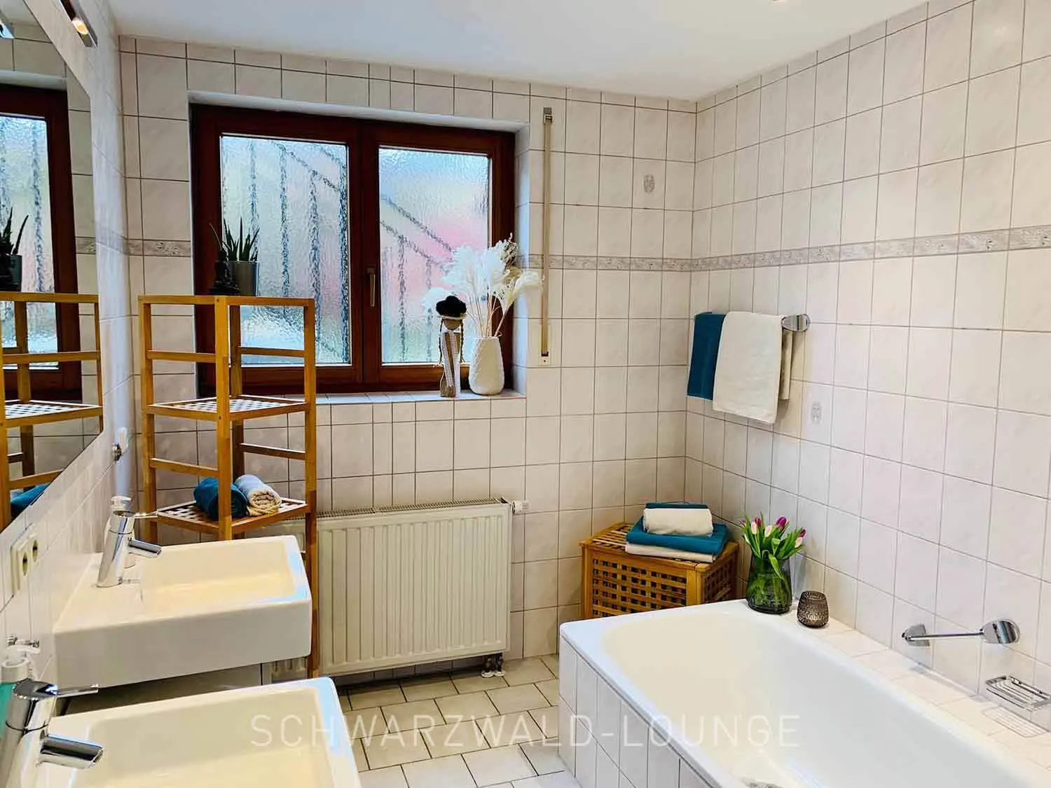 - Bad mit Dusche und Badewanne, beleuchtetem Spiegel und Föhn. Separates WC