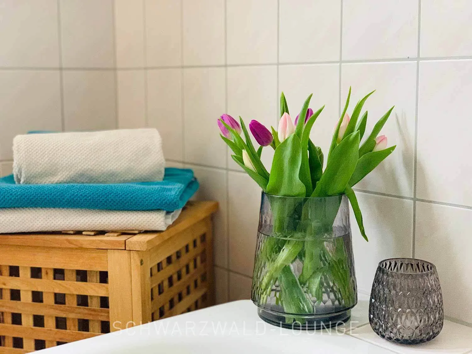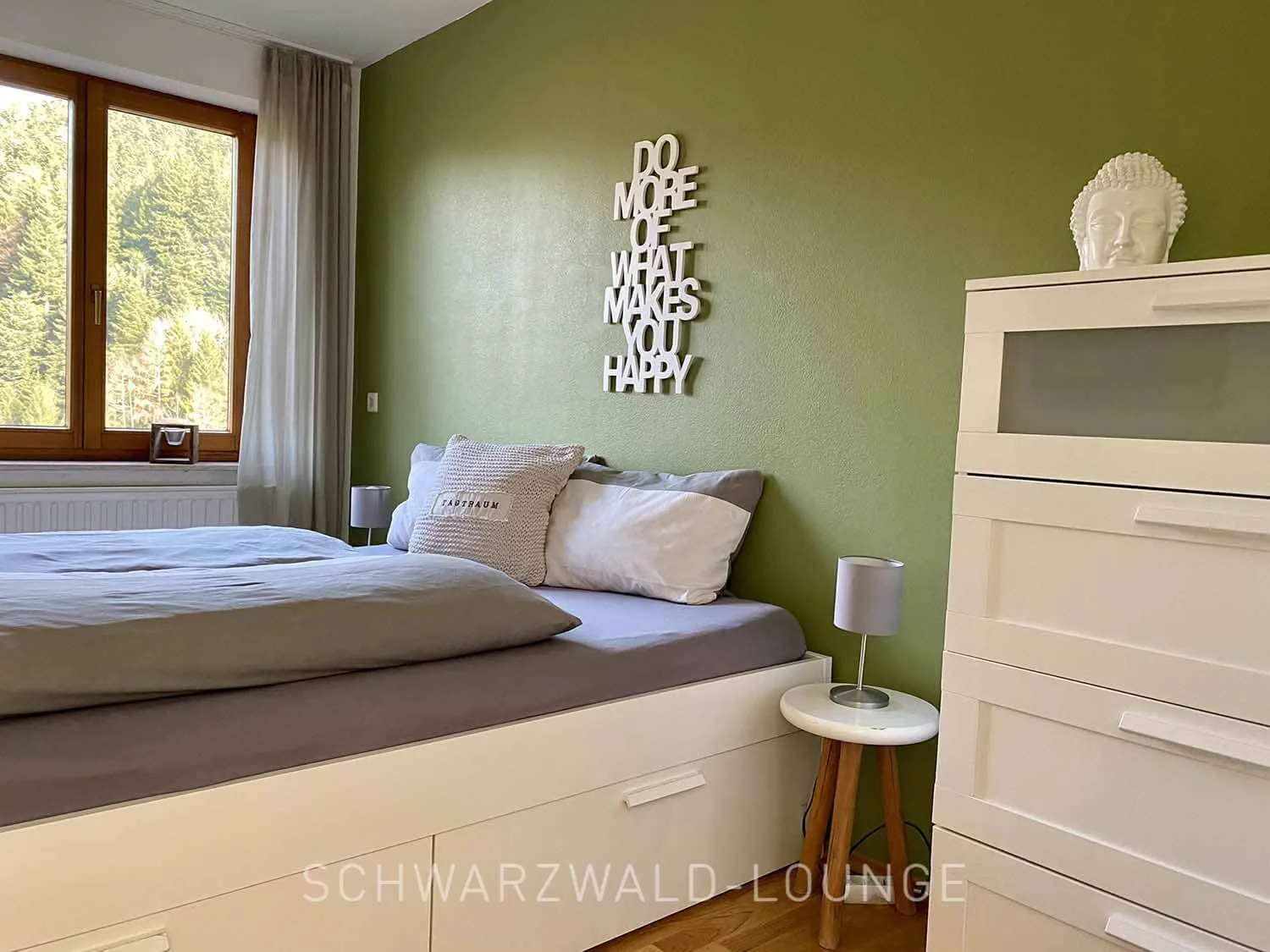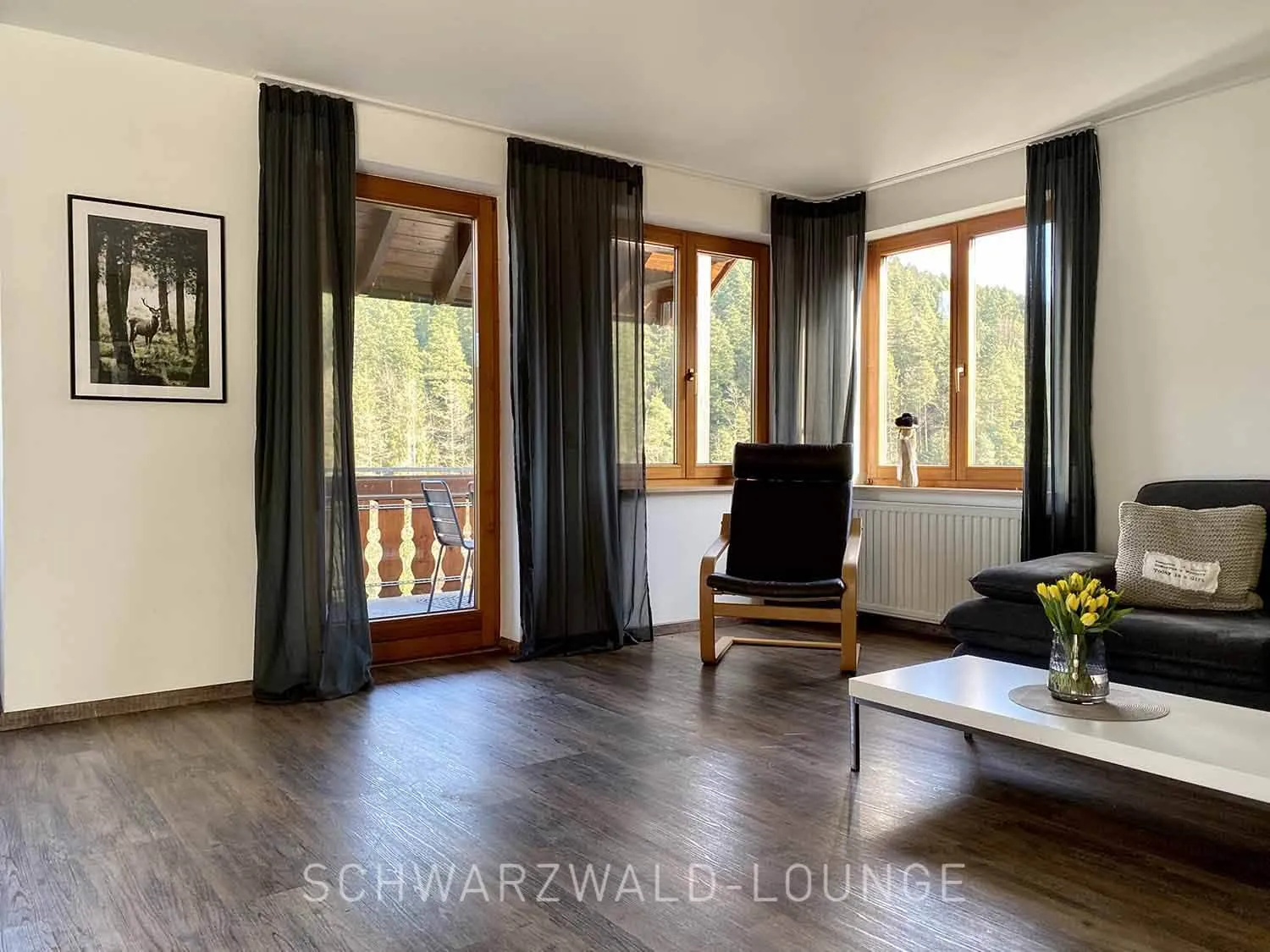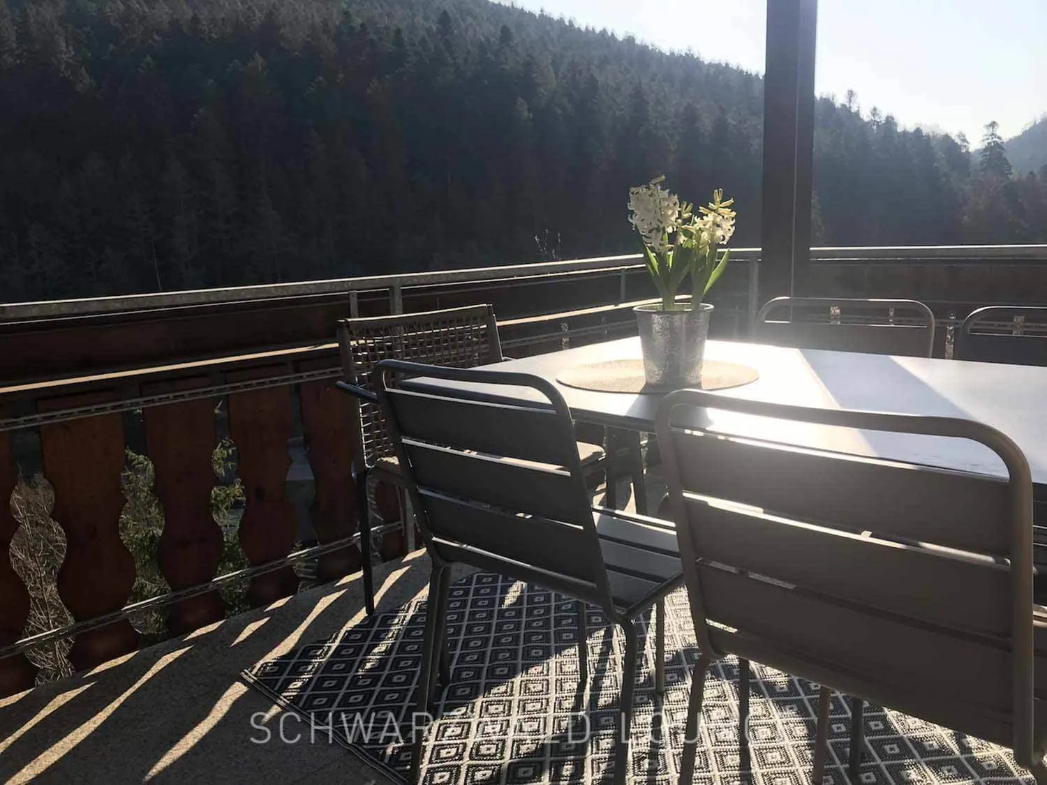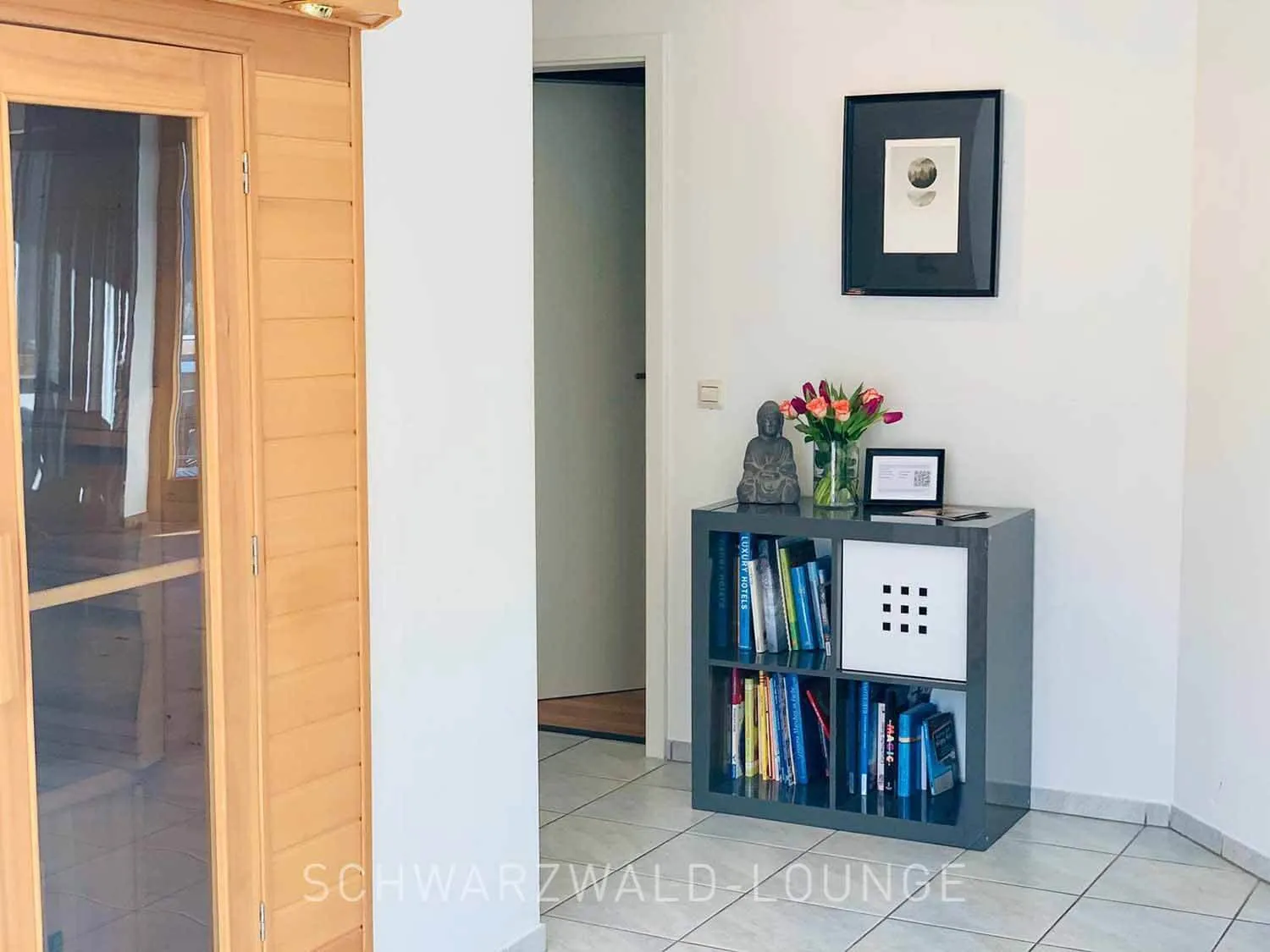 Unsere Luxus-Ferienwohnung Bergsee Schwarzwald empfängt Sie mit viel Platz und dem Luxus einer eigenen Sauna. Durch die Hanglage des Apartmenthauses erfolgt der Zugang über drei lange Stufen. Vom Balkon aus genießen Sie dennoch die tolle Aussicht auf das Tal und die umliegende Schwarzwaldkulisse.