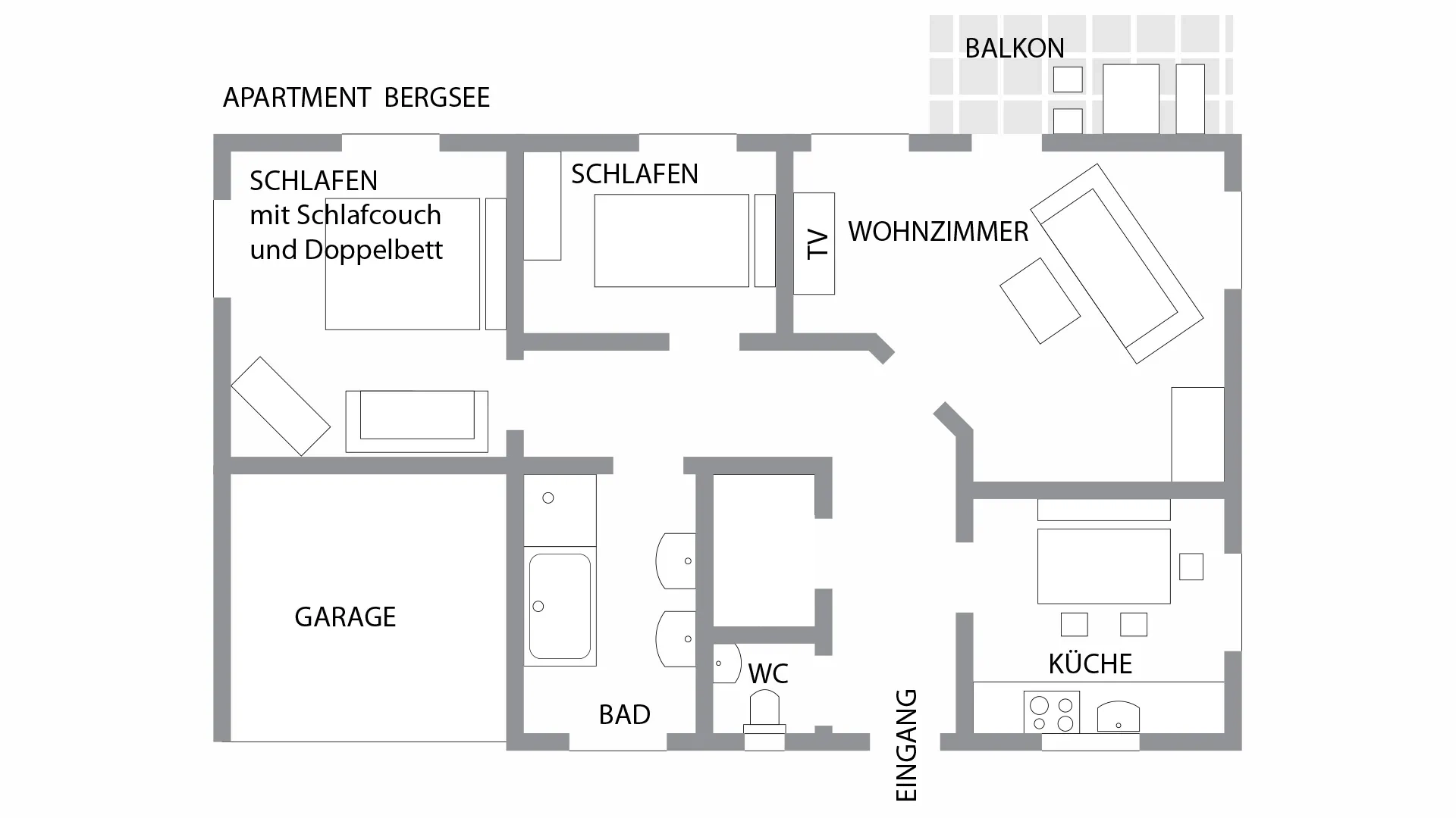 - Zwei Schlafzimmer, eines davon mit zusätzlicher Schlafcouch
