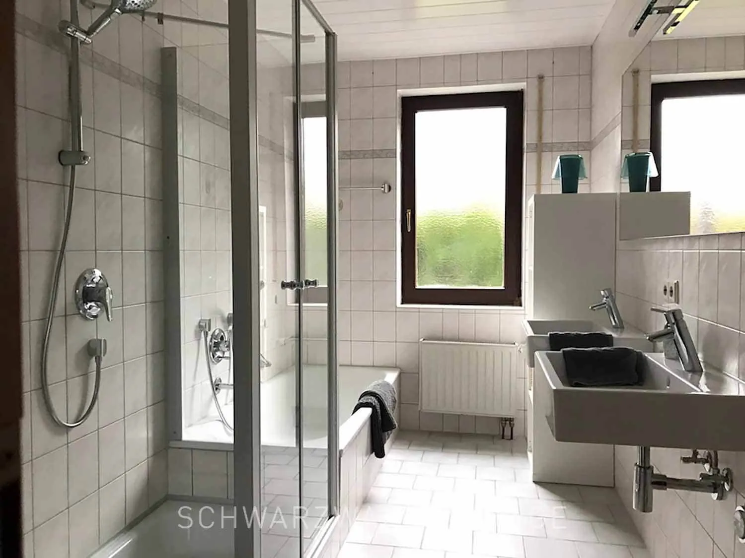 - Tageslichtbad mit Dusche und Badewanne, beleuchtetem Spiegel und Föhn