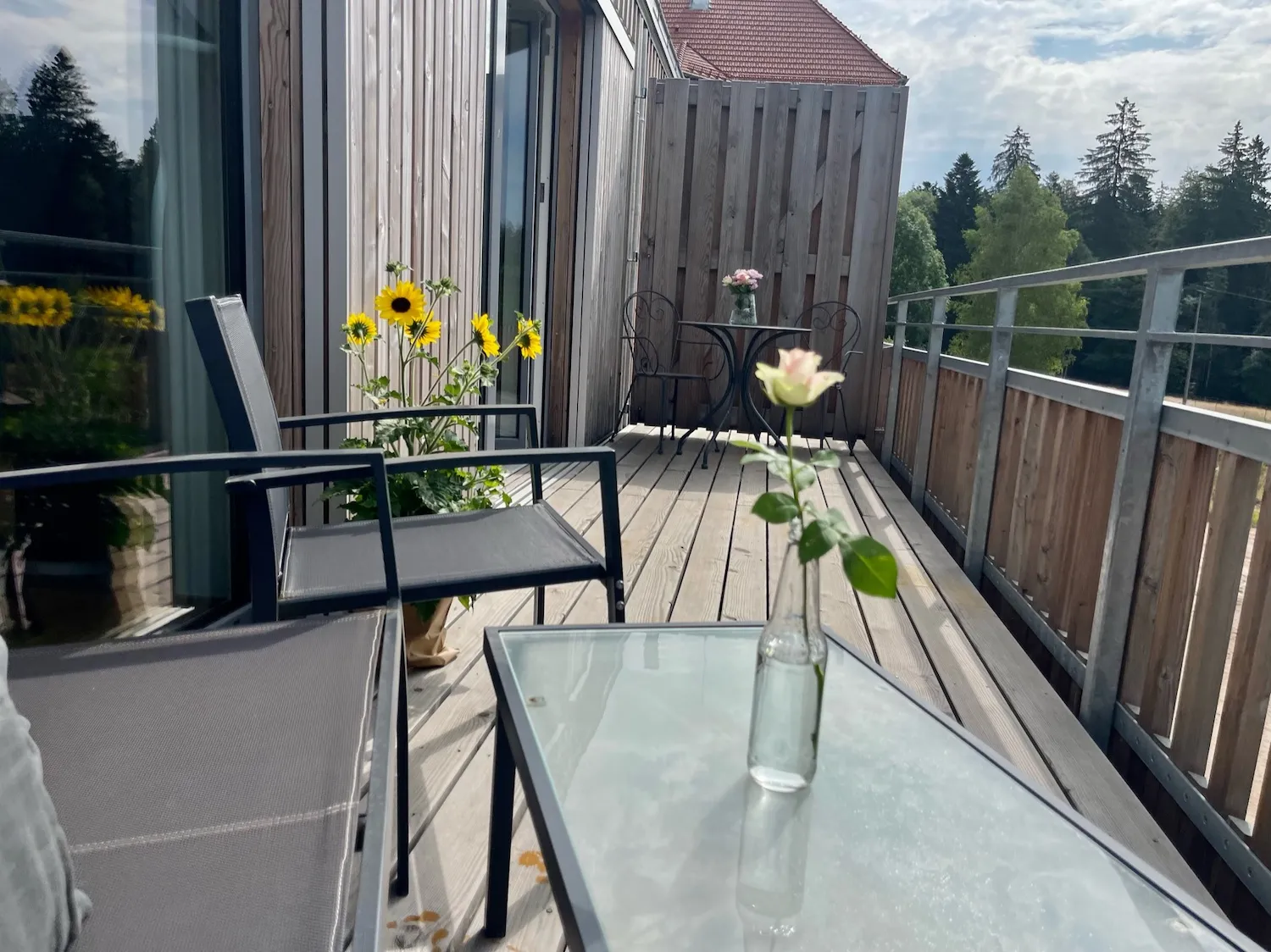 Durch die wunderschöne Waldrandlage können Sie die umliegende Schwarzwald-Kulisse mit wunderschönen Ausblicken auf dem Balkon genießen.