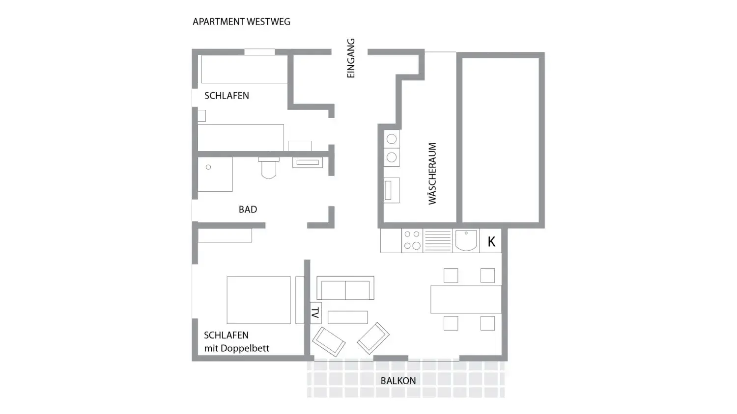- 1 Schlafzimmer (Doppelbett 180×200)