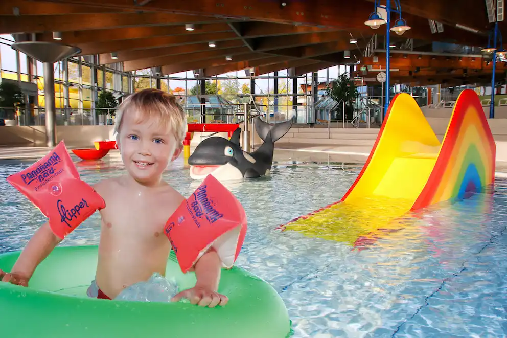 Neben einem großen Erlebnisbereich mit Rutschen und einem neu gestalteten Bereich für Kleinkinder, lockt die 1300qm große Saunalandschaft mit 5 Saunen.